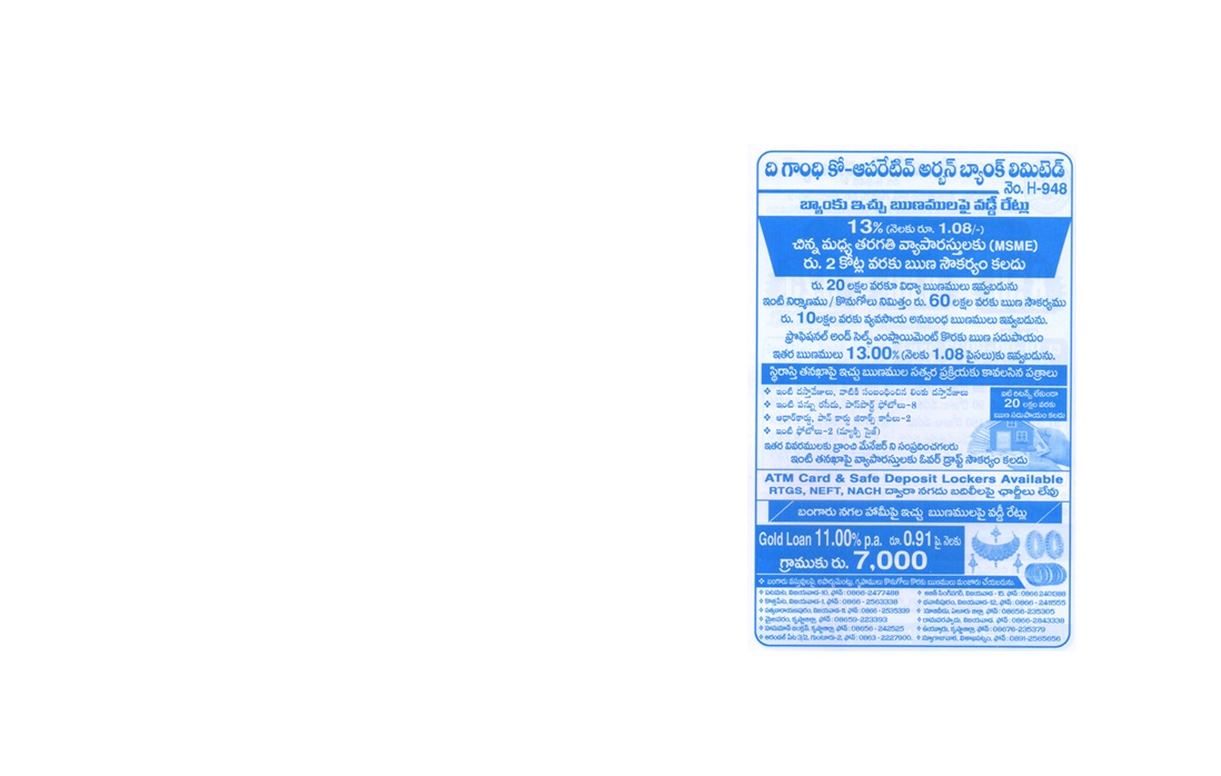 97 years in service, with the spirit of the Cooperation, the Bank is growing day by day from its formation, gaining trust of the Depositors by providing Safety and Security to their funds deposited in the Bank and lending to lower and middle class people to provide financial assistance for their development.