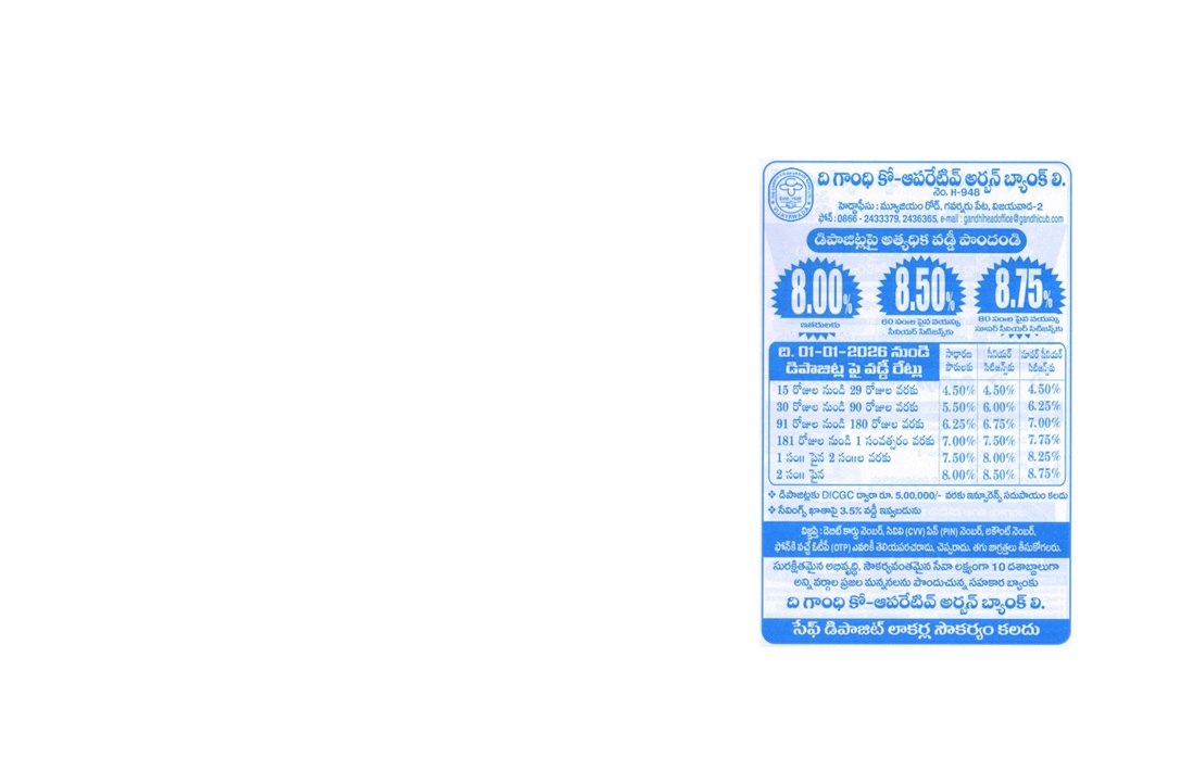 © 2012 GANDHI CO-OPERATIVE BANK URBAN LTD Privacy Policy